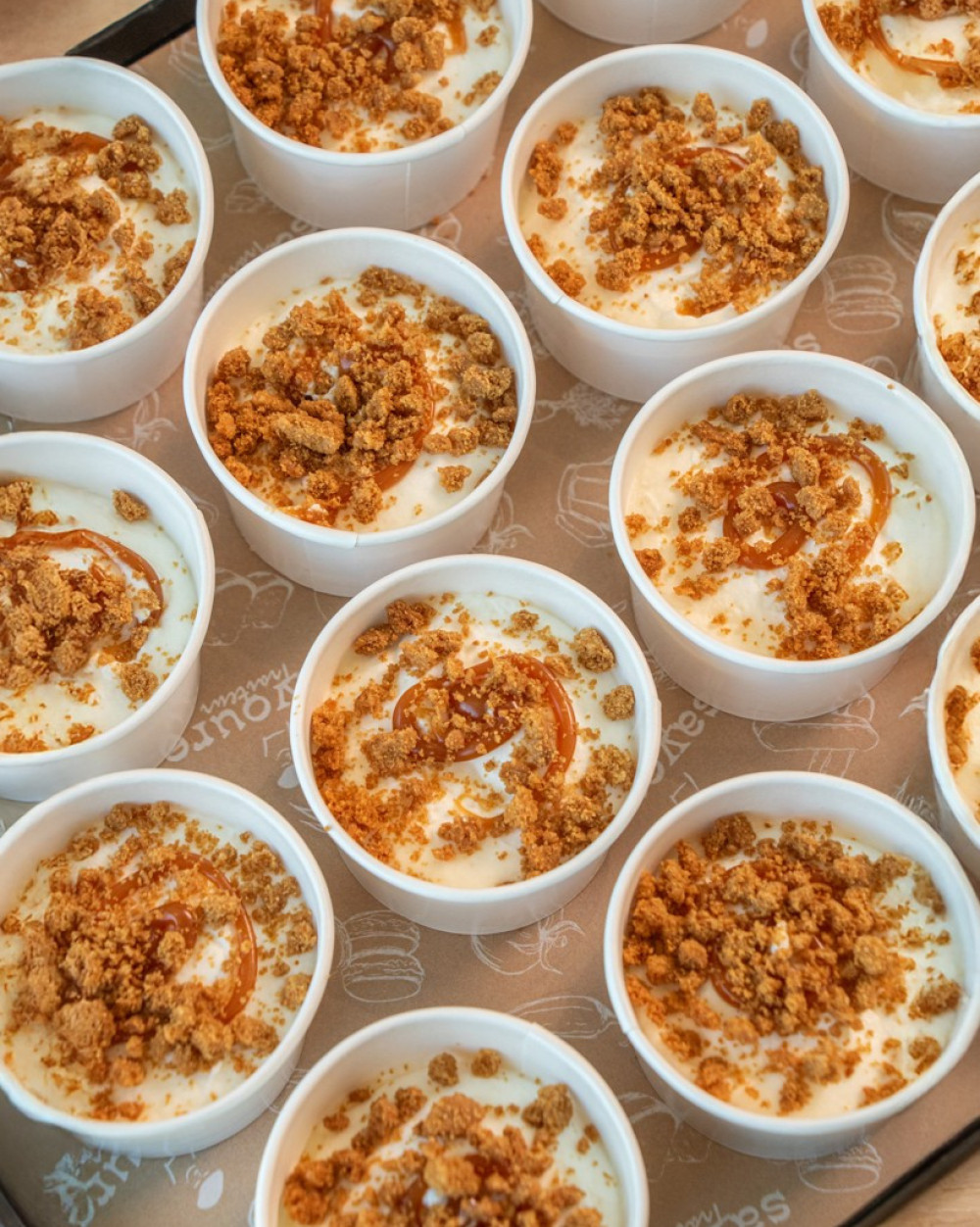 Biscuits spéculoos, crème au fromage frais et nappage caramel.