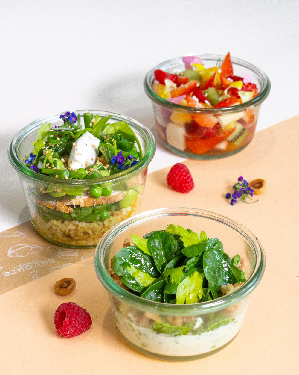 Nos plateaux repas en bocaux sont livrés froids et prêts à déguster dans nos sacs isothermes individuels. Une boule de pain ainsi qu'un kit couverts et serviette sont inclus dans chaque menu.